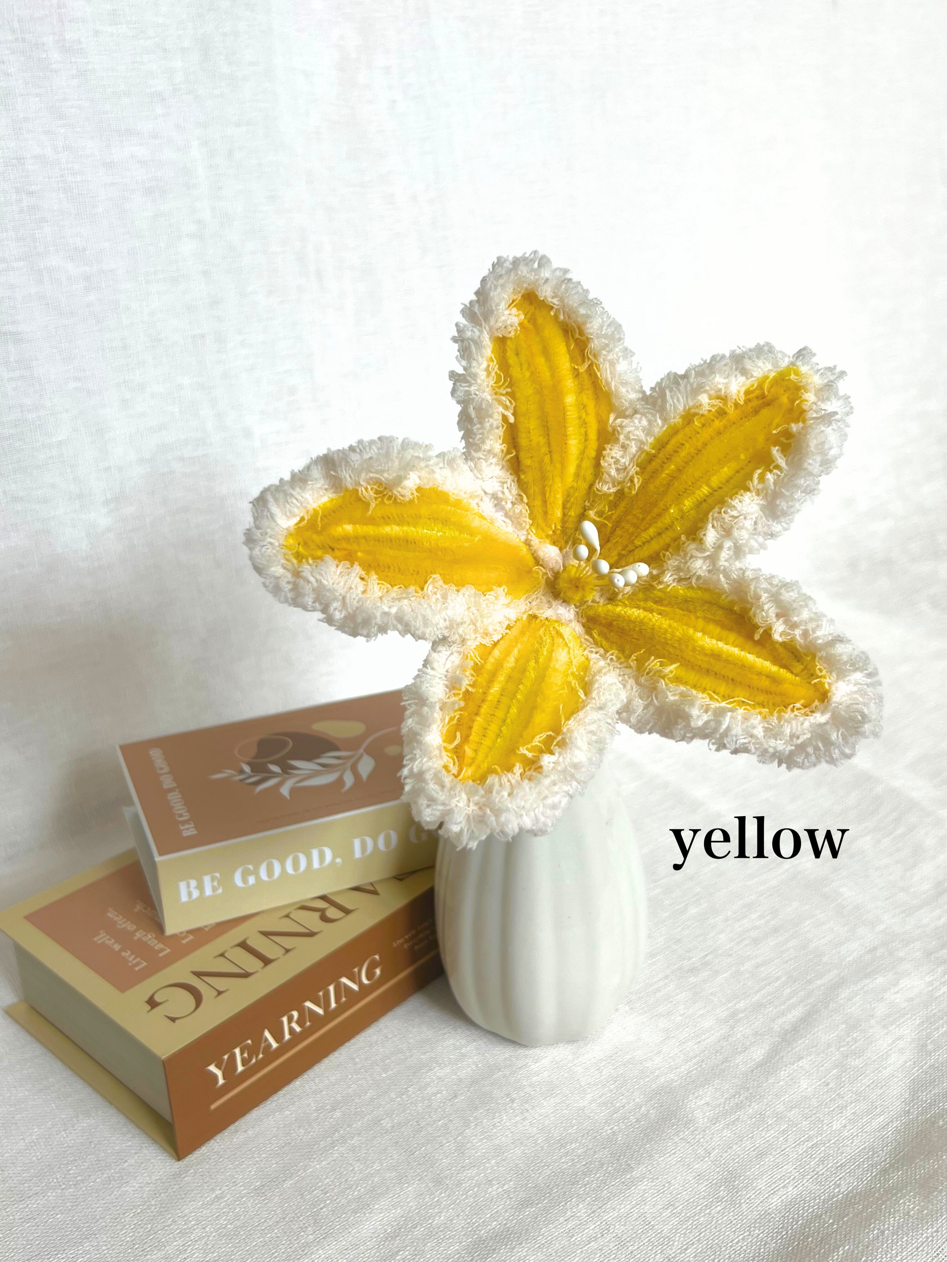 ふんわりと毛糸で縁取られた、やさしくも華やかな印象のモールフラワー・リリー。